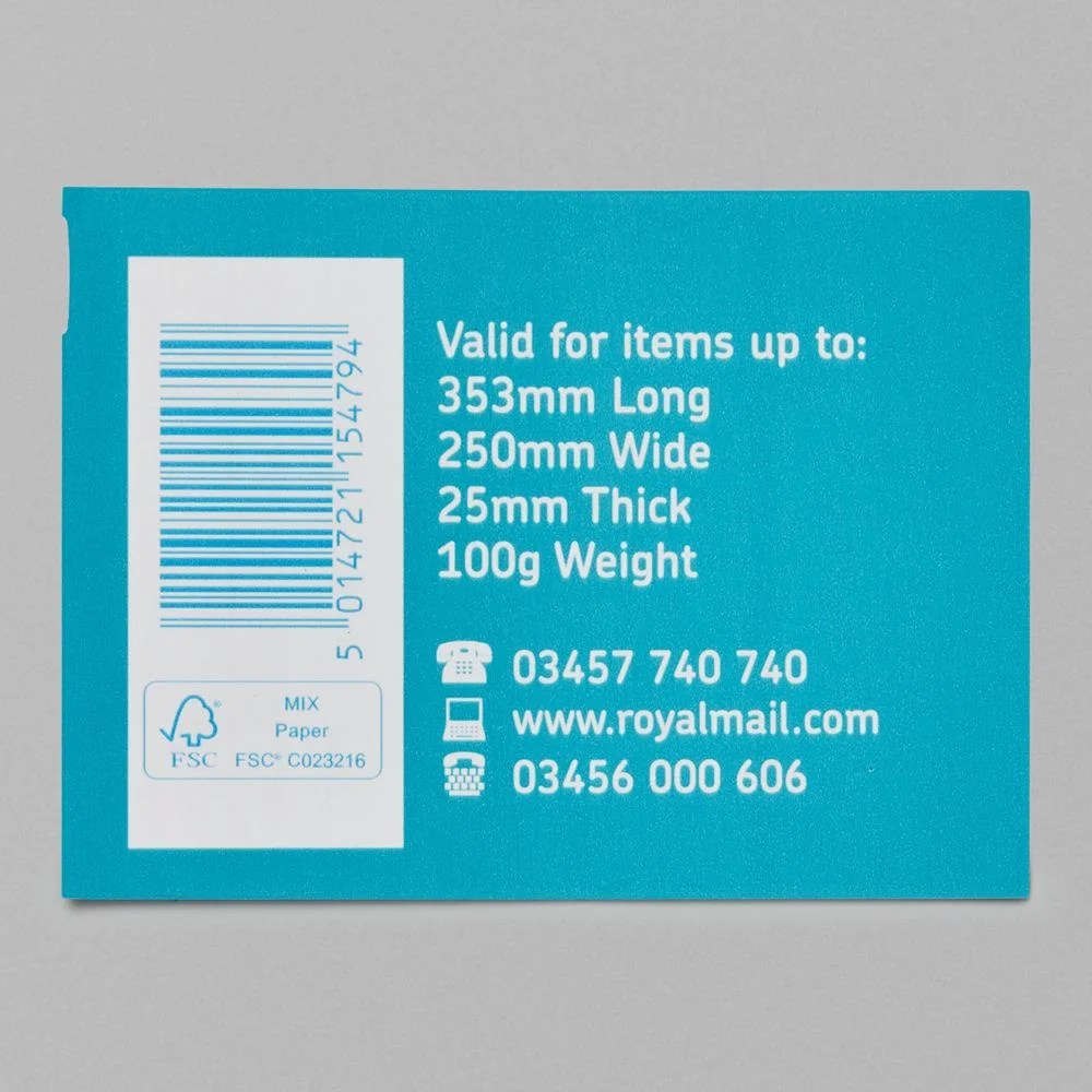 Valid for items up to 100g in weight and 353mm 250mm x 25mm in size.