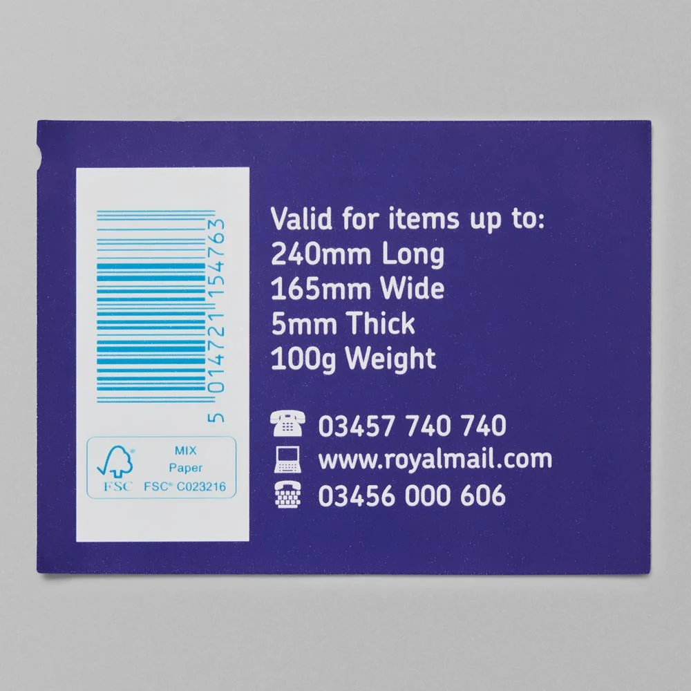 Valid for items up to 100g in weight and 240mm x 165mm x 5mm in size.